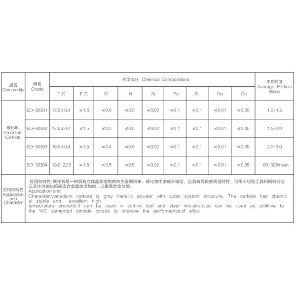 Vanadium carbide is gray metallic powder with cubic system structure of NaCl type,crystalline constant is 4.182A.